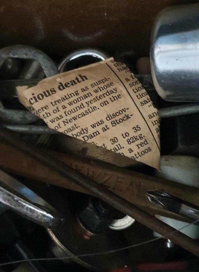 An aged newspaper clipping that had found its way into the toolbox at some stage, kept getting in the way and I finally focused on it, deciding to straighten it out so I could see what it was about.